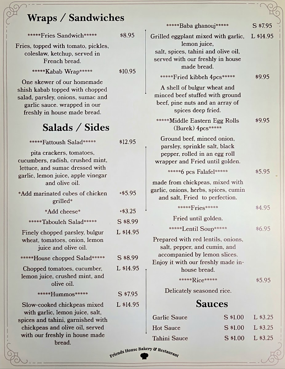 Served with side of fries, soda drink and tahini spread, ketchup.